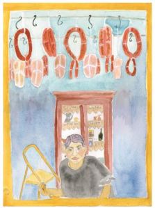 My vacina (neighbor) Rosina is a master of sausage making. In December, when the people slaughter their pigs, Rosina makes her sausage, like most of the others in the village. She then hangs each one from hooks attached to long poles suspended from her kitchen ceiling. The heat from the fireplace slowly cures the sausage by a natural fermentation process over the following months.