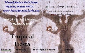 If you don’t have the ingredients on hand or the time to mix it up yourself, you can get Tropical Fiesta from Blessed Maine Herb Farm already blended to perfection and packaged in a beautifully labeled cylindrical tin.