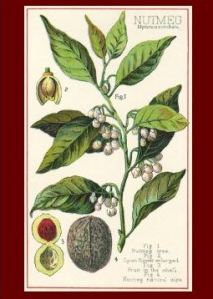 Nutmeg Myristica fragrans Since ancient times nutmeg has been well respected as a stimulating brain tonic and its ability to improve clarity, focus and concentration. Additionally, nutmeg is an effective sedative and pain reliever as well as a reliable soother of digestive woes. I remember my mother offering me a warm cup of milk with a bit of honey and some nutmeg sprinkled on top of it as a drink before going to sleep. Evidently this is a traditional sleep procuring drink throughout many parts of the world. Nutmeg is calming and relaxing to the entire nervous system and helps you fall soundly asleep if consumed before bed.